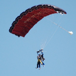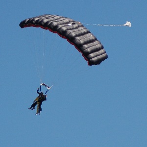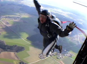 Freifallgeschwindigkeit erreicht hat. Bis hierhin dauert der Sprung ca. zehn Sekunden und man hat eine vertikale Fallstrecke von etwa 300m hinter sich. Die Fallgeschwindigkeit beträgt nun ungefähr 200km/h.